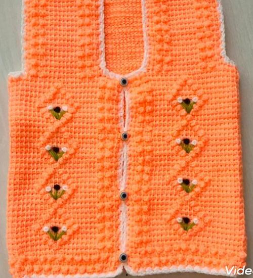 5. 缝合:编织完成后,将前后片和袖子缝合在一起,一个可爱的宝宝背心就完成了!
